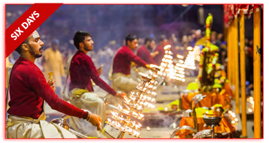 Departure from Bangalore Airport at 08.55 a.m. Arrival Varanasi Airport at 10.50 a.m. . Transfer to hotel. After refreshment having Dharshan of Lord Kashi Vishwanath, Kashi Visalakshi and Kashi Annapoorneswari Temples . Evening visit Ganga Aarti by boating on the way visiting Manikarneka Ghat.