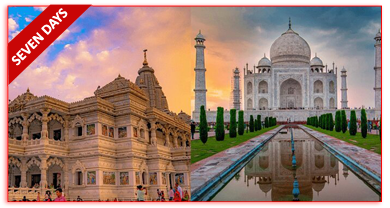 Departure from Bengaluru Airport at 05.45 a.m. Arrival Delhi Airport at 08.35 a.m. Cab will start at Delhi Airport and drive to Agra. Transfer to Hotel. Evening visit "Taj Mahal" and enjoy unforgettable Sun Set near the bank of Yamuna.